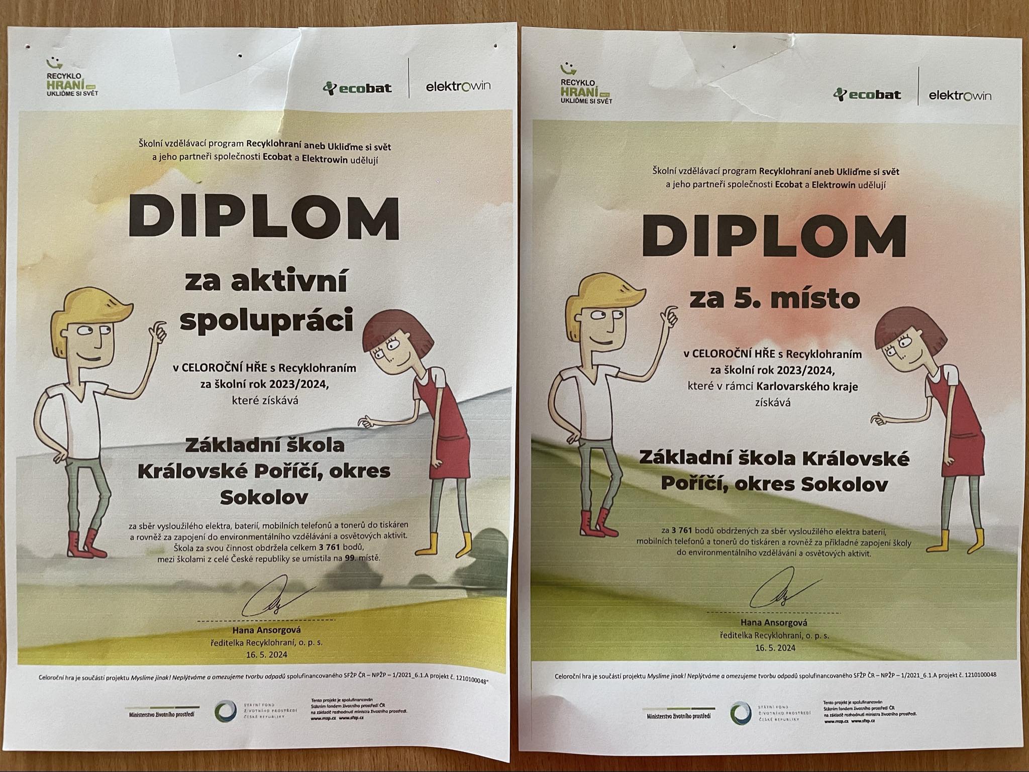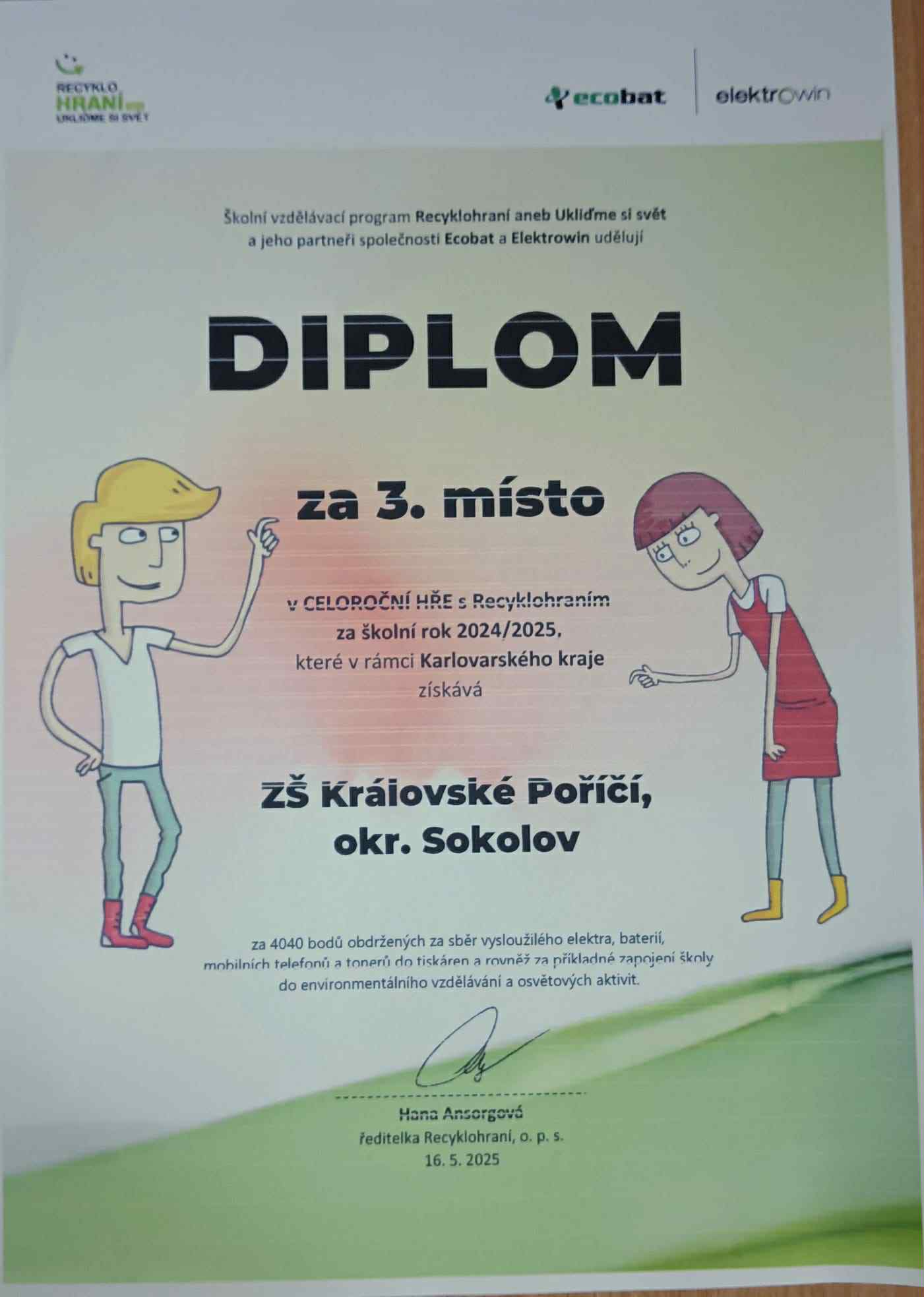 Žáci naší školy se již řadu let účastní programu „Recyklohraní aneb Ukliďme si svět“ - soutěže ve sběru elektroodpadu, vybitých baterií a prázdných tonerů.